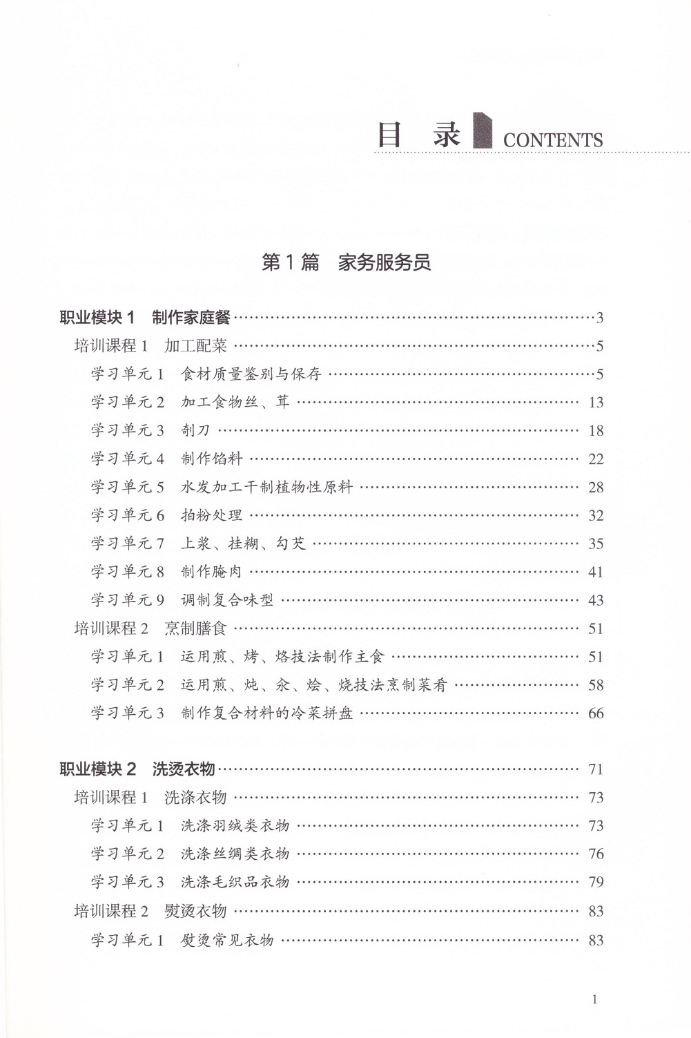 家政服务员等级教材紧贴《标准》和培训包要求编写,内容上突出职业能力优先的编写原则,结构上按照职业功能模块分级别编写。该等级系列教材共包括《家政服务员(基础知识)》《家政服务员(初级)》《家政服务员(中级)》《家政服务员(高级)》《家政服务员(技师)》5本;家政服务员初级、中级、高级按照职业工种(家务服务员、母婴护理员、家庭照护员、整理收纳师)分模块编写。《家政服务员(基础知识)》是各级别家政服务员均需掌握的基础知识,其他各级别教材内容分别包括各级别家政服务员应掌握的理论知识和操作技能。