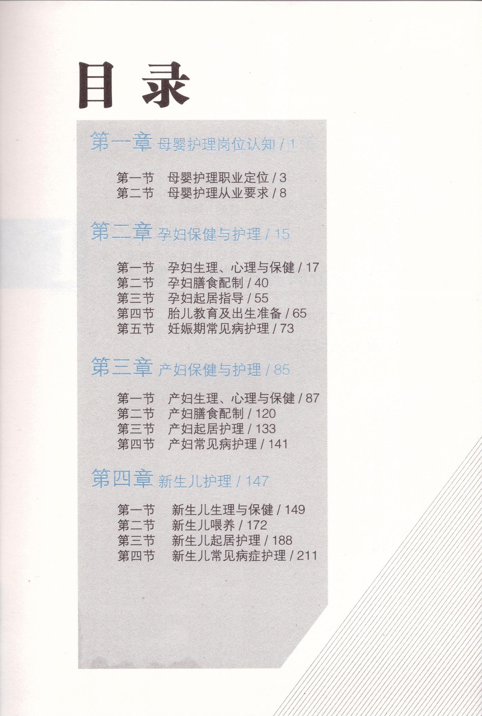 母婴护理是专业从事孕妇、产妇、新生儿、婴幼儿日常生活起居护理、健康保健与启蒙教育工作;在力所能及的情况下,母婴护理人员还需协助从事营养配餐、家庭烹饪、清洗保洁等工作。母婴护理教材给予母婴护理人员更高、更为全面的知识与技能要求。